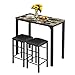 [3 Pieces Bar Table Set] ----- 1- piece square coffee table and 2-piece round barstools. Both the table and chairs are made of quality MDF board covered with marble grain and black coated metal frame for a chic look. Metal frame of table and stools enhance its design.