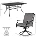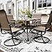 Quality:Our patio dining sets with swivel chairs are made from a metal frame with powder coating and enhanced durable textiles that are rust and fade resistant and easy to clean without special care. The table top has an elegant wood grain texture, which is more interesting than the traditional metal design. Therefore it is suitable for outdoor garden lawn courtyard swimming pool coffee time.