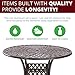 [All-Weather Resistant] Designed to be all-weather resistant, the cast aluminum patio table and chairs are a more durable alternative to wrought iron patio furniture. The patio table set features powder-coating finishes to prevent rust or fading and is durable enough to withstand rain and wind for year-round use.