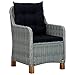 Table:Material: Solid acacia wood with an oil finishDimensions: 33.5" x 33.5" x 29.1" (L x W x H)Chair:Color: Light grayColor of cushion: BlackMaterial: Round PE rattan, solid acacia wood, powder-coated steelMaterial of cushion: 100% Polyester cover with foam fillingOverall dimensions: 24.4" x 25.6" x 36.2" (W x D x H)Seat width: 21.3"Seat depth: 19.3"Seat height from the ground: 16.1"Armrest height from the ground: 25.2"Seat cushion thickness: 2.4"Back cushion thickness: 3.9"