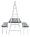 Ultra-chic 3-piece outdoor set includes one (1) trellis-framed dining table and two (2) benches