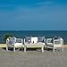 [CHIC DESIGNER DETAILS]: Add a chic touch of style to the patio, backyard, porch, sunroom, deck, or terrace with this 4-piece outdoor set; Includes one (1) bench, one (1) coffee table, and two (2) chairs