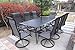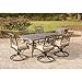 Traditional Design: The Traditions Dining Collection by Hanover includes 6 stylish and comfortably cushioned cast aluminum swivel rocker chairs and cast aluminum table. Elegant cast accents scroll across the chairs and table top, adding a level of sophistication and craftsmanship to the collection. Designed to fit any backyard, patio, deck, or porch for a casual dinner or cocktails outdoors with family and friends.