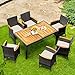 7-Piece Outdoor Dining Furniture Set: This outdoor rattan dining furniture includes an acacia table and 6 rattan chairs with cushions. It features a stylish appearance, which is suitable for outdoor places such as gardens, poolside and backyards. Whether serving meals with family or chatting with friends, this rattan dining table set is the perfect solution for outdoor leisure.