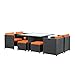 Rearrange As You Like: Sophia & William outdoor furniture set includes 2 corner sofa with cushions and clips, 4 armless sofa with cushions and clips, 1 fire pit table, 1 tempered glass coffee table and and the instructions. This set can be rearranged according to your preference and location. Try this and build your own stylish and comfortable furniture set. Wicker sectional is lightweight to move out.