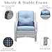 ALL-WEATHER MATERIALS: This wicker patio furniture set features all-weather resin wicker that is rated at 1500 UV hours, is easy to clean, and extremely resistant to the sun, rain, heat, and cold to not crack, sag, or fade. The wicker is hand-woven over powder-coated steel frames to withstand the outdoor elements, providing superior durability and toughness.