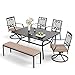 7 PCS SET: Our Set comes with 2 swivel chairs, 4 dining chairs, 1 rectangle patio table and 6 cushions. Necessary tools and instruction are included for installation.