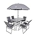 OUTDOOR PATIO DINING SET: This eight-piece furniture set includes a rectangular dining table, a center-mounted sunshade umbrella, and six folding chairs. Fold chairs to move or store them quickly. Entertain guests, put on dinner outside, drink, dine, have afternoon tea, or even play a board game while you enjoy the pleasant summer breeze.