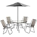 [ Modern Sleek Design ]: Mix contemporary design with classic comfort. This set includes 4 comfortable chairs, tempered glass top table, matching umbrella. Designed to fit any backyard, patio, deck, or porch for a casual dinner or cocktails outdoors with family and friends.