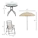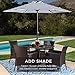 Adjustable Table Umbrella: With the included umbrella mounted securely to the table, outdoor dining doesn't have to include sunburns. Use the hand crack on the center pole and say goodbye to glare. Note: Please provide an umbrella weight/stand.
