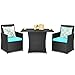 Selected Materials: Made of rustproof steel frame wrapped with weather-resistant PE rattan, this patio bistro set allows you to leave it outside. Meanwhile, tempered glass is studier and safer than other common glasses. And, both table and chairs have non-slip foot pads for additional stability.