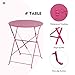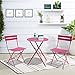 Space Saving - These table and chairs fold up easily so you can put them away for future use when you are not using them. The color on metal bistro set is bright and will really stand out no matter where you place them.