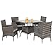 MODERN OUTDOOR FURNITURE SET: This 5-piece wicker dining set comfortably seats 4 and is crafted with a stylish, modern design that helps create an inviting ambience for your outdoor living space
