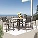 【Exquisite Table Design】The patio dining set has a larger table surface, made by plastic wood which also looks like real wood. More easily to be cleaned and maintained. The outdoor patio table set can accommodate up to 7 people at same time to enjoy your leisure time. (Kindly Note: In order to prevent the table from being burned, please do not put hot food on the table, because it's not heat-resistant.)