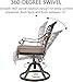 ➤360 DEGREE SWIVEL CHAIRS: Swivel function provides extra comfort and relaxation. These patio dining chairs perform a smooth 360-degree spin and slight rocking motion while you enjoy your meal. Set the mood with comfortable and relax seating for your patio. Attached to the swivel seat frame, the chair arms are heat-resistant, wear-resistant, and provide increased rocking comfort when lounging and relaxing. Each chair seat supports up to 300 pounds.
