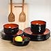 Dinner Service for 6: Black and red dinner services with brilliant glow, includes 6 of each - 32 oz bowls, 11’’ dinner plates, 9” salad/dessert plates.