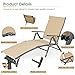 【DURABLE ALUMINUM FRAME】This foldable lounge chair features solid rust-resistant powder-coated and aluminum frame, and offers sturdy support with a weight capacity of 300 lbs, lightweight and heavyduty.Seating fixing device prevents backrest from sliding. Extra foot fixing brackets prevents the footrest to move.Excellent stability extends the life of the Chaise Lounge Chairs.