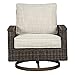 DURABLE DESIGN: 360 degree swivel chairs are made of all weather, handwoven resin wicker over a rust proof aluminum frame. Cushions are wrapped in Nuvella. Armrests and base have a wood look