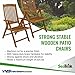 DURABLE TEAK WOOD - For over 2000 years teak wood has been the choice of boat makers for superior performance. The solid teak construction of our beautiful patio folding chair provides durability against cracks and splinters. Our folding wooden patio chairs can withstand weather changes. This durable folding chair with arms will provide years of dining enjoyment.