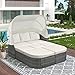 Tensun Outdoor Daybed With Retractable Canopy, Outdoor Sunbed Sectional Sofa Set With Lift Coffee Table, Pe Wicker Patio Furniture Set Conversation Set, Grey Rattan + Beige Cushions