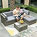 Yitahome 5 Piece Outdoor Patio Furniture Sets, All-Weather Wicker Sectional Sofa Patio Conversation Set With Ottoman, Coffee Table And Cushions, Gray Gradient