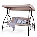 COMFORTABLE & STYLISH: The canopy of this porch swing can be rotated, provides optional shade coverage for sunshade all day long. Three wide removable seats give you plenty of space. Soft cushion makes it more comfortable for your back or arm in a relaxing break. 2 foldable multifunctional side tables included.