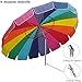 SPECIFICATIONS: 8' diameter rainbow umbrella, 1 1/4" rust free lightweight aluminum pole stand, 16 extra strong fiberglass support ribs, sand anchor auger tip