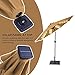 TIPS:1.Umbrella base is NOT included. Recommended purchase ASIN:B0C4Y6233D 2.Close the umbrella during windy days for longer use. 3. The sewn-in velcro straps easily wrap around the closed umbrella to keep the umbrella closed and secure.4.Please check the plug connection by unscrewing the solar panel before use.