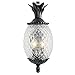 A traditional outdoor wall light from the John Timberland brand. Leaf and scroll detailing for an antique, vintage look.