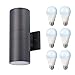Bundle Includes: ASD Bronze Patio Wall Light Fixture with two E26 Base Sockets- ETL Listed, 2-Directions Waterproof Wall Sconce - Die-Cast Aluminum Housing and Tempered Glass Cover and OSTWIN 9W LED Light Bulb 60 Watt, E26 Light Bulb, A19 5000k Daylight, 800 Lumens, CRI80 Non-Dimmable, UL Listed 6 Pack
