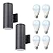 Bundle Includes: ASD (2 pack) Bronze Patio Wall Light Fixture with two E26 Base Sockets- ETL Listed, 2 Directions Waterproof Wall Sconce - Die-Cast Aluminum Housing and Tempered Glass Cover and OSTWIN (6 Pack) 9W LED Light Bulb 60 Watt, E26 Light Bulb, A19 3000k Warm White, 800 Lumens, CRI80 Non-Dimmable, UL Listed