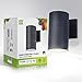 Design & Options: Porch lights outdoor wall mount fixture have a contemporary design with effective up/down illumination. This outdoor wall sconce is made from die-cast aluminum and a tempered glass cover. It is a durable cylinder exterior light that is highly resistant to rust, making it perfect for a variety of applications. The high quality reflector creates a 50° beam angle. It comes in four finish options: matte black, bronze, white, and stainless steel