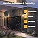 IP54 waterproof: all-weather resistant, wall sconces made of high quality aluminum, so anti-rust & corrosion. Never worry about rain, storm, sleet, snow, ultra high or low temperatures, this outdoor wall light fixture will still perfect after years of using.