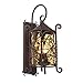 BROWN GLASS FINISH: Decorative rust around the lantern adds texture and an antique feel to the dark brown iron body and wall plate with a vintage style silhouette