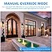 🏡【Unique Manual Override Mode】This dusk to dawn outdoor lighting could continuously be on 100% brightness at night, such as party scenes. To shift to manual mode from auto one and turn wall switch "off-on" with 0.5~2sec... In this mode, the lights will turn on and keeping 100% brightness for approximately 8 hours but will auto turn off at dawn.