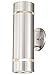 Item dimension: 8.3x2.4"(Height x Diameter),Base Diameter: 2.9" ; Stainless Steel Modern modern up down dual head LED wall light for outdoor and indoor use.