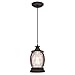 Enhance your rustic or arts and crafts decor with the natural beauty of this one-light indoor mini pendant with an oil rubbed bronze finish, barn wood accents and clear seeded glass