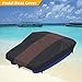 100% WATERPROOF BOAT COVER: This pedal boat cover is made of heavy duty 420 Denier marine grade fabric and is coated with PU layer that is weatherproof, waterproof and tear-resistant. The entire boat cover is stitched with double threads, and the strong seams can prevent the boat cover from tearing. There are drawstrings on the bottom of the boat cover to keep it in place and make the cover even more secure on windy days.