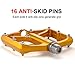 【Great Grips】: There are 16 replaceable pins per pedal (8 per side) that provide solid grip with good foot placement. Whether you're grinding up an ultra-technical climb or bombing down the gnar, your feet stay in position, and these pedals are confidence-inspiring.