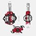 ✔DUAL FUNCTION DESIGN: One side of these Bike Pedals work as SPD clipless pedals, can ride with clipless shoes (come with Gasket*2 ), compatible with all SPD MTB bike pedals system; The other side, as normal aluminum pedals with 4 stainless steel anti-skids spikes, compatible with all daily shoes, perfect for road, mountain, MTB, etc.