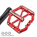【LIGHTWEIGHT & GREAT GRIPS】: New style of reverse installation anti-skid nails, each side of this mountain bike pedal with 8 pins, which will provide a strong grips, effectively prevent your shoes from sliding off, make the cycling safer. You will get the ease and maneuverability from this large flat pedals.