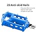 【20 ANTISKID NAILS 】 Double-sided 20 anti-skid nails on the surface of metal bike pedals, provide enough friction and adhesion force to prevent from skidding. 20 skid-proof pins enhance non-slip effect to grip your shoes securely and smooth sealed 3 bearing pedals are laborsaving.