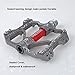 【Ultra-light】: Wider size flat: 3.66(L)*4.13(W)*inches, only 0.39LB/each. Large body and lightweight are the most outstanding features of this MTB pedals, more comfortable pedal, maximize improve your riding experience for long ride comfortable and pedaling efficiency.