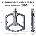 CONSTRUCTION - The internal spindle is made of lightweight titanium alloy making the pedals durable and strong, while still being easy to handle on the trails. The pedal flat platform is made of qualified aluminum and the width is 97mm / 3.81 inches, with the pedal thickness being 17.5mm / 0.68 inches. The design maximizes the surface area for your foot, which translates to a more comfortable and secure ride.