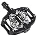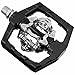 DUAL FUNCTION: Riding with clipless shoes: More efficient energy transfer to pedals or riding with casual shoes. LARGE PLATFORM: The aluminum body is 103 x 85mm relatively large. It ensures more riding stability. SC-C01F Cleats are included. Material: Steel. compatible with Shimano SPD. Cleats weight: 40g=0.08lbs /pr.