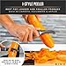 The stainless steel blade glides right through the skins, giving a thin peeling you won’t be able to match with a knife. Ergonomically designed handle for a firm and safe grip.
