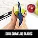 Dual Swiveling Blades: flexible action twin blades save you time during food prep; helps you peel in both directions while also contouring to the shape of the produce; makes peeling quick and more comfortable; durable and strong enough for the toughest fruit skins, potatoes and vegetables