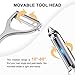 HIGH-QUALITY MATERIAL: 360 ° flexible double blade, sharp and durable without jamming; Anti-slip handle with built-in hole digging design, easy to use; Long plastic handle multifunctional fruit peeler with the serrated blade makes peeling easier; Head back blade design makes it easier to divide the peel.