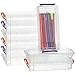 Package Includes 9 pack translucent plastic pencil box with white, orange and purple locking clips (3 pack of each color), meet your requirement for various purpose. The dimensions of plastic pencil box measures 8.5"x 4"x 1.6", large enough to hold many pencils and pens. Suitable for children over three years old.