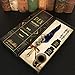 Feather Quill Pen and Ink Set - Joyeee vintage feather quill pen and ink set include feather dip pen, 15 ml bottle of black ink, dip pen nibs, 4 colors ink cartridges, metal feather pen bases, gold sealing wax sticks, wax seal stamp, and exquisite retro gift box for making it a perfect high-end gift.